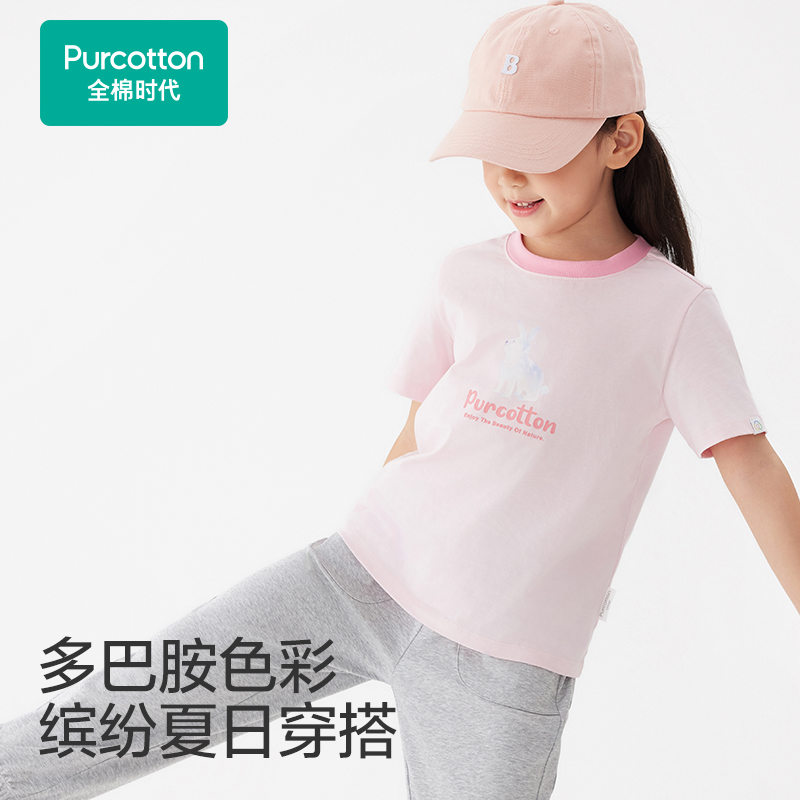 5A抗菌短袖 新款 全棉时代儿童t恤夏季 男女孩纯棉透气t 5A抗菌