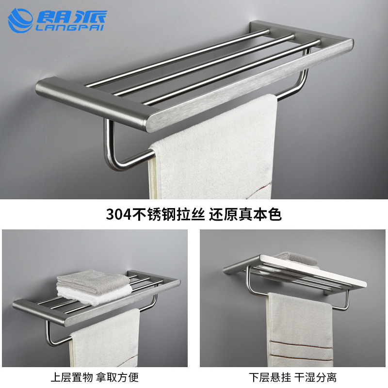 朗派不锈钢拉丝毛巾架卫生间浴巾架银色浴室置物架卫浴五金挂收纳