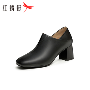 女春季 气质粗跟女士皮鞋 新款 通勤不累脚高跟鞋 真皮女鞋 红蜻蜓单鞋