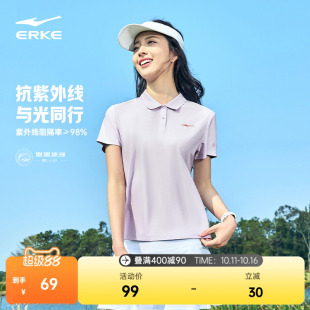t恤女夏季 女款 新款 运动上衣女装 女士防晒翻领短袖 鸿星尔克polo衫