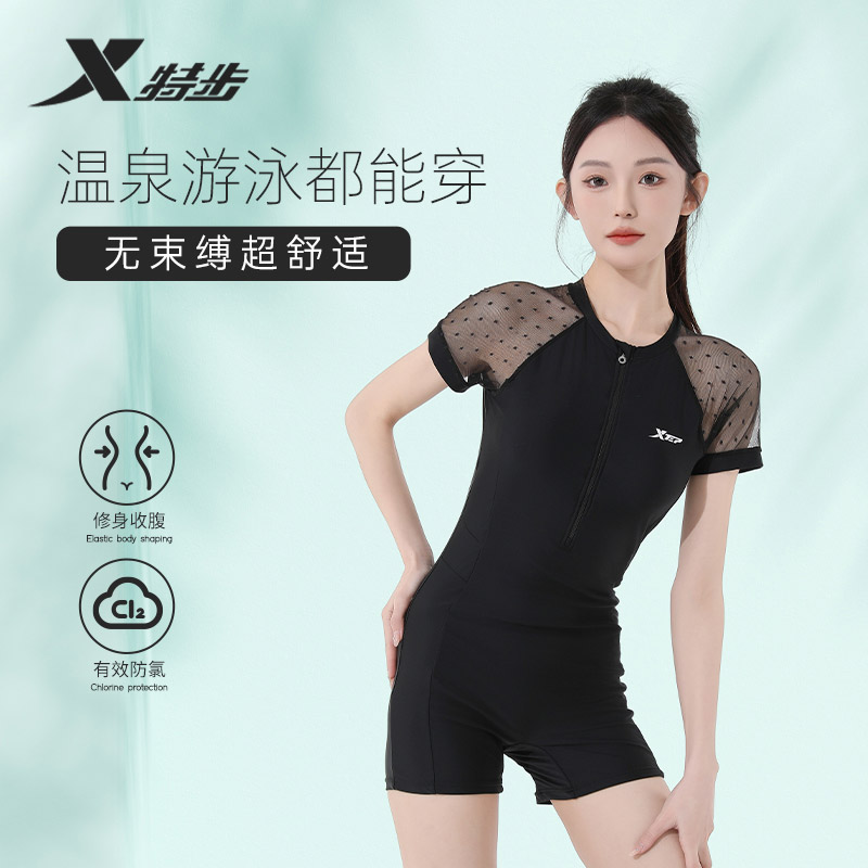 温泉度假女士保守游泳馆泳装 2025新款 连体泳裤 安踏小蛮腰泳衣女款