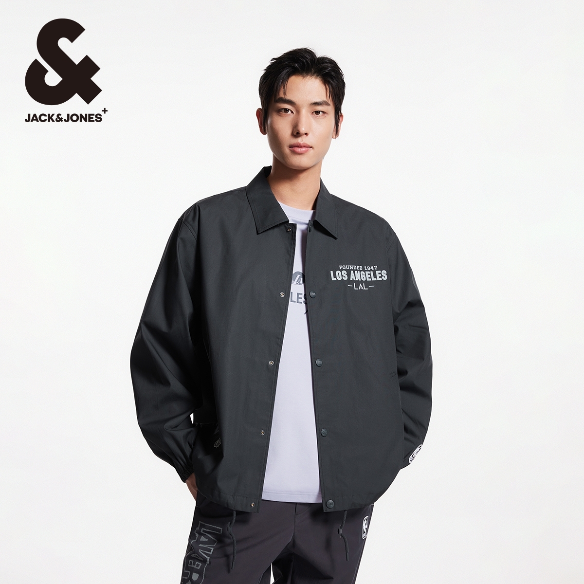 杰克琼斯奥特莱斯夹克NBA湖人队联名胸前字母刺绣舒适潮外套男装