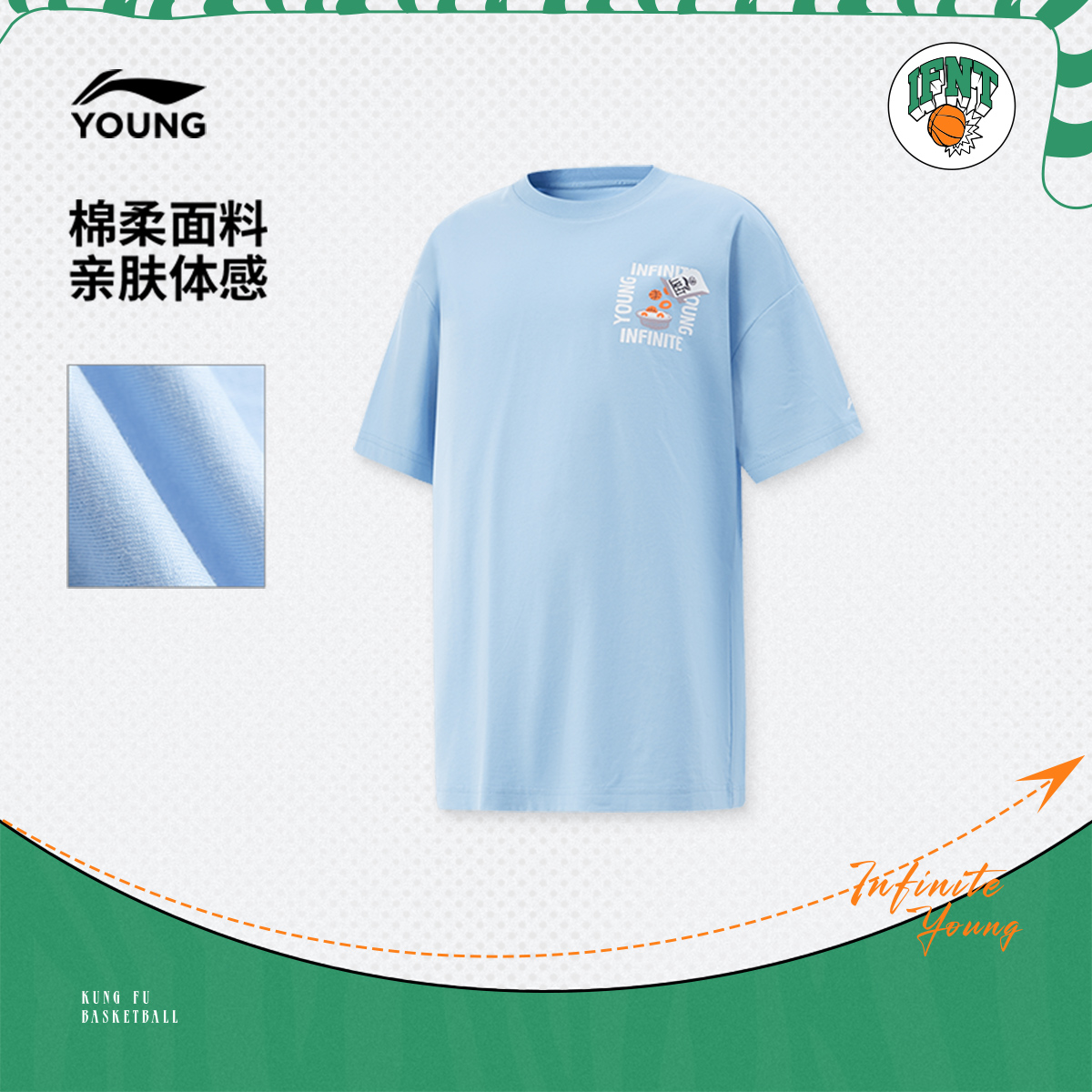 针织童装 篮球系列宽松上衣秋季 T恤男大童2025新款 李宁儿童短袖