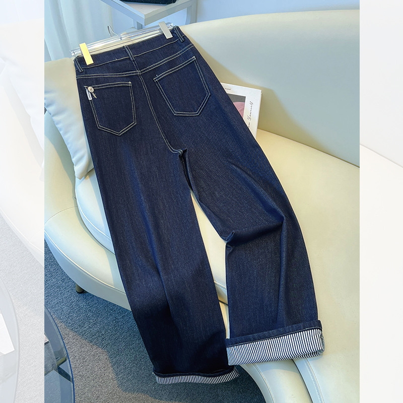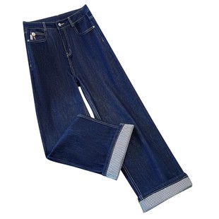 新含棉高腰阔腿裤 女2025秋季 复古通勤百搭老钱风 Moda牛仔裤 Vero