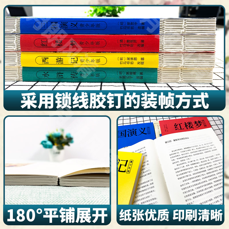 阅读青少年必读三国演义水浒传红楼梦西游记附彩绘大页中小学课外阅读经典 全套4老师推荐 读物 小学生版 四大名著原著正版