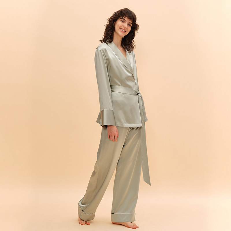 丝所禅思22姆米重磅真丝睡衣长袖 国风桑蚕丝家居服卯兔系列 新中式