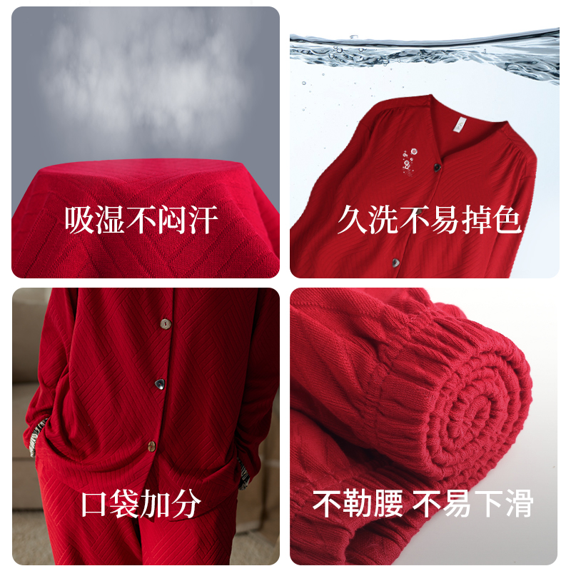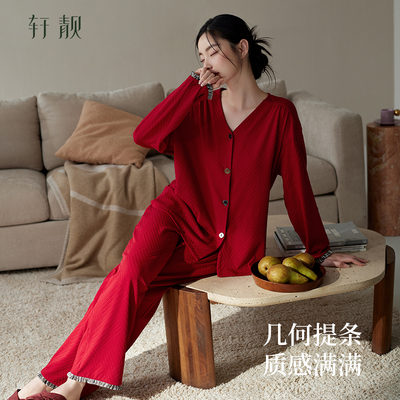 秋冬家居服套装 轩靓睡衣女春秋款 红色本命年休闲大码 长袖 纯棉四季