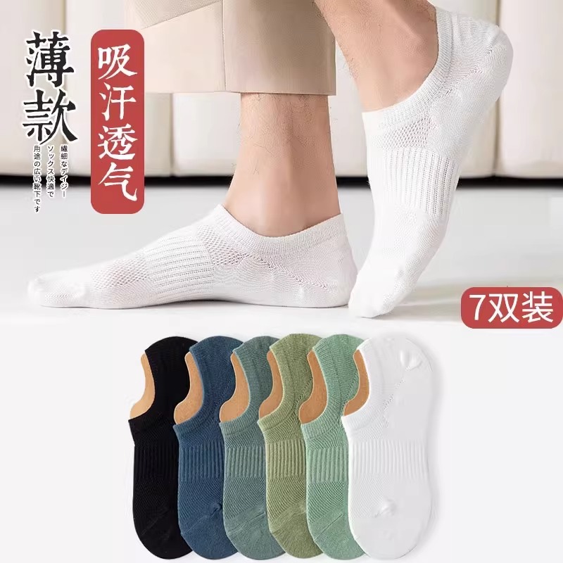 隐形不掉跟纯棉防臭吸汗7A抗菌春秋浅口短袜 薄款 袜子男士 船袜夏季