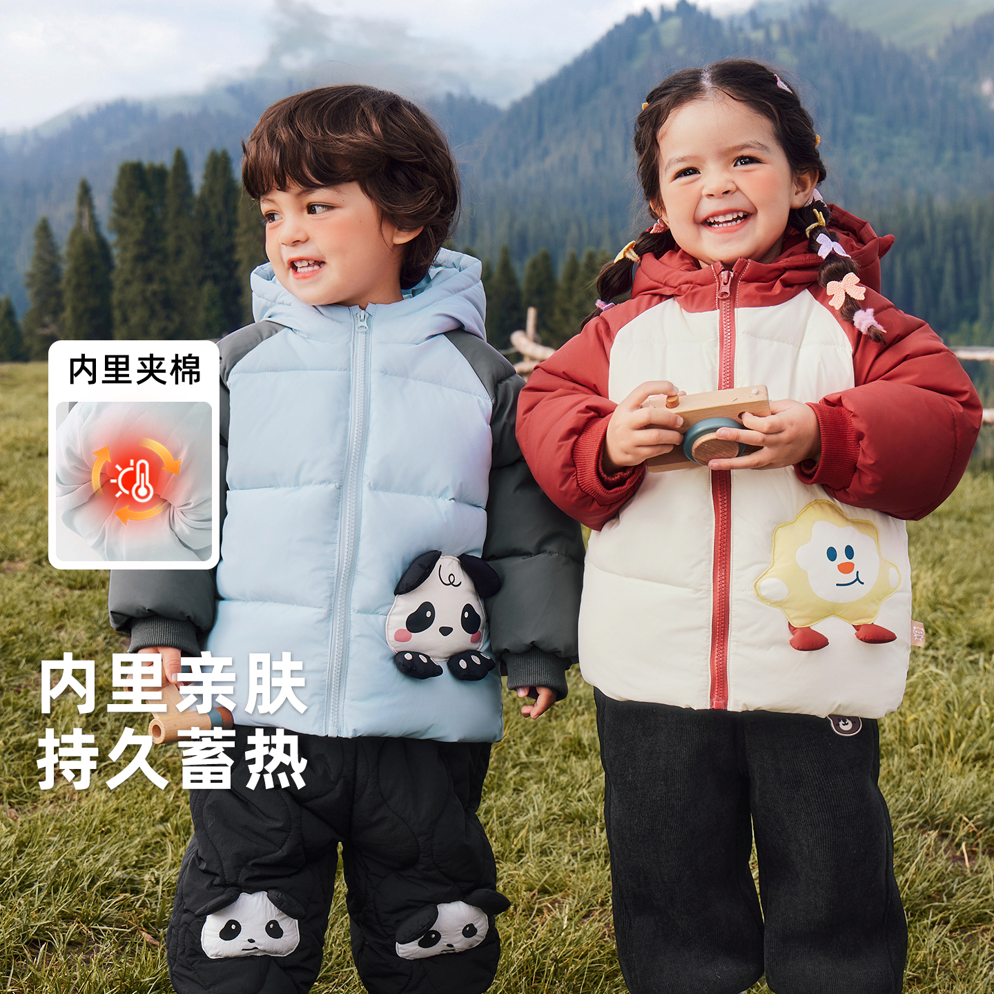咔咔熊猫宝宝卡通三层夹棉外套冬装 深冬潮 男童女童加厚保暖连帽衫