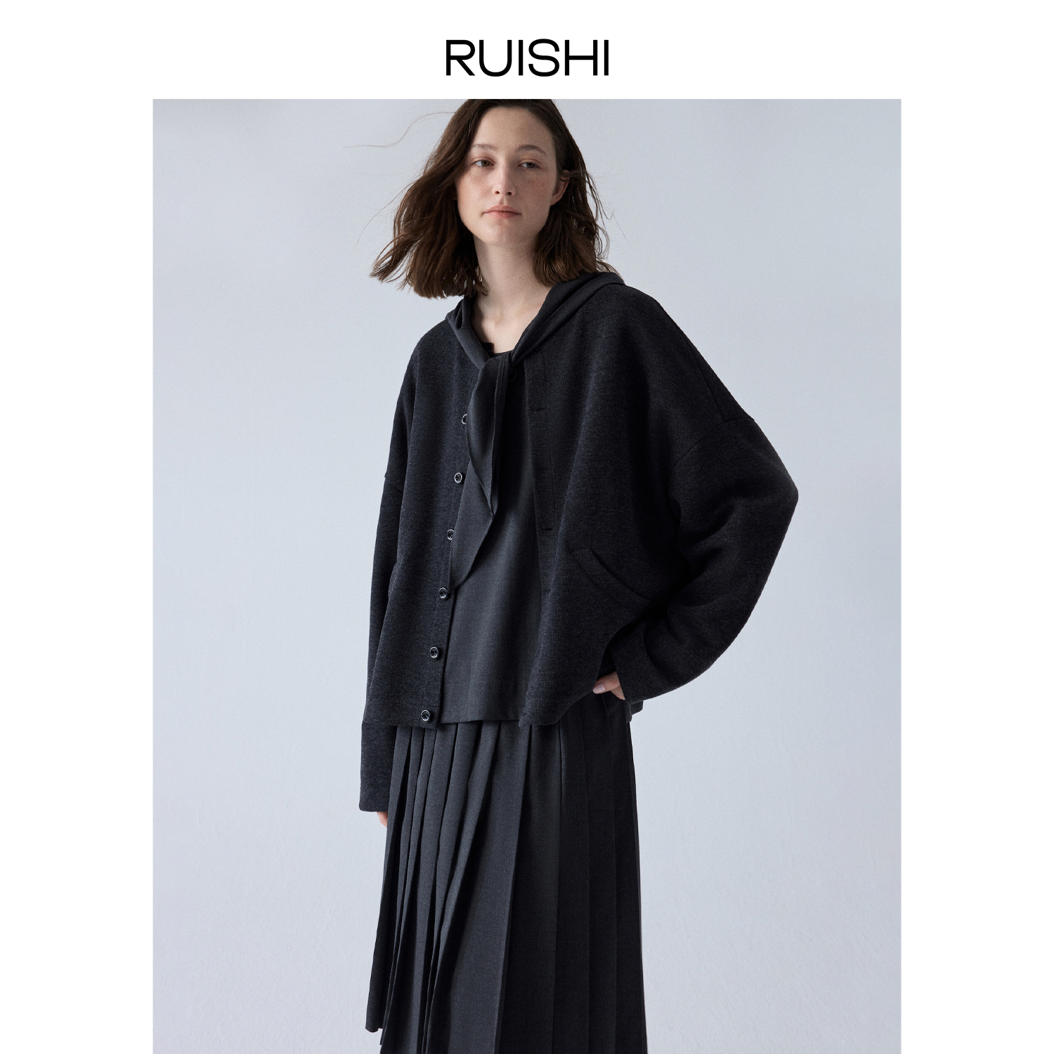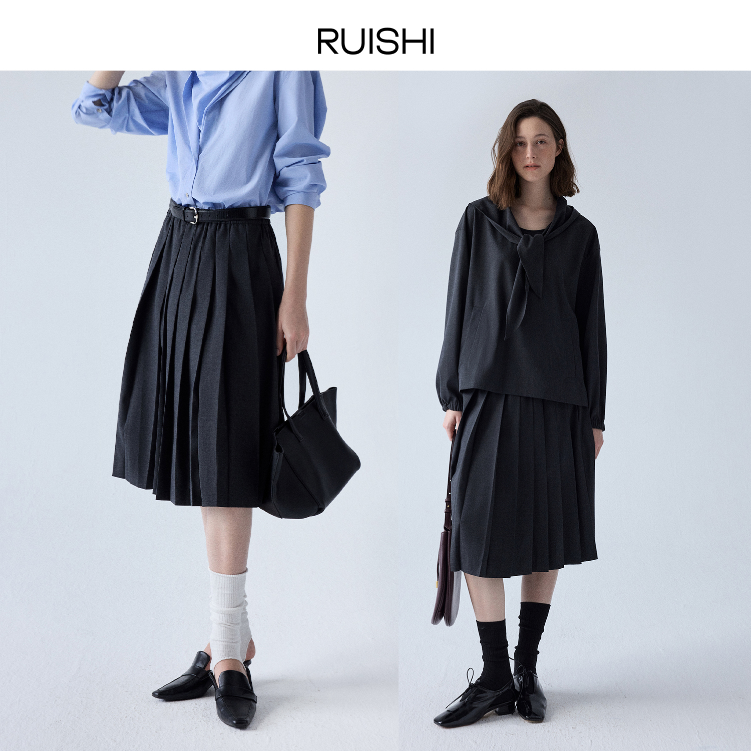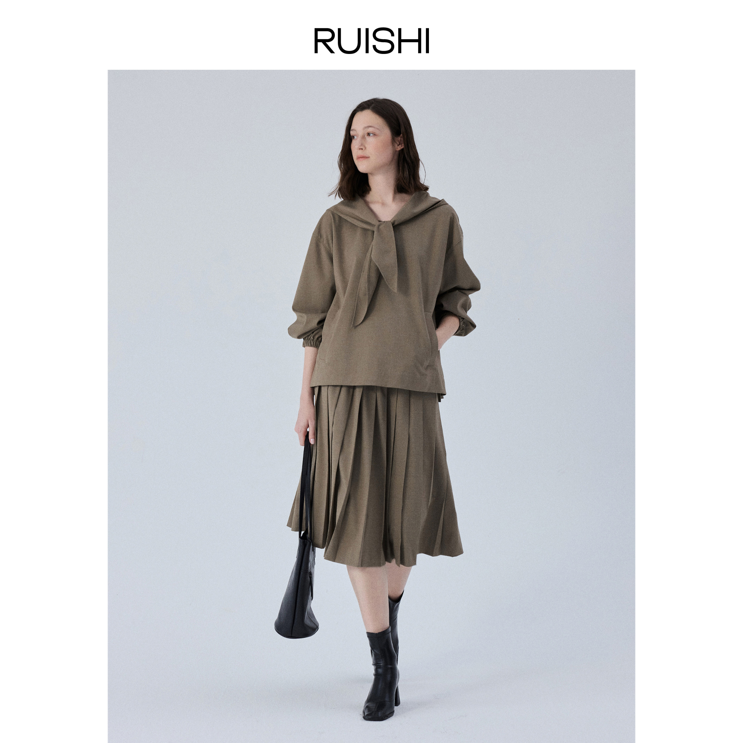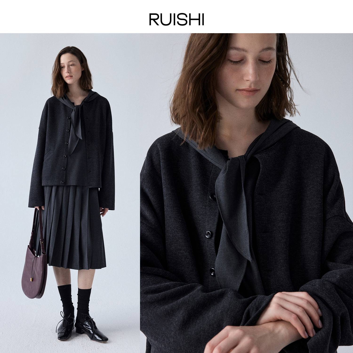 RUISHI芮时 知识分子风连帽绑带上衣百褶半身裙女秋 午后书店
