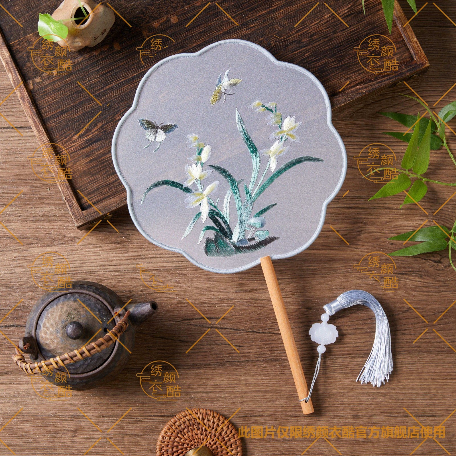 团扇扇子苏绣双面修包边春夏季 景点摆拍跳舞绢布孔雀宣纸荷花流苏