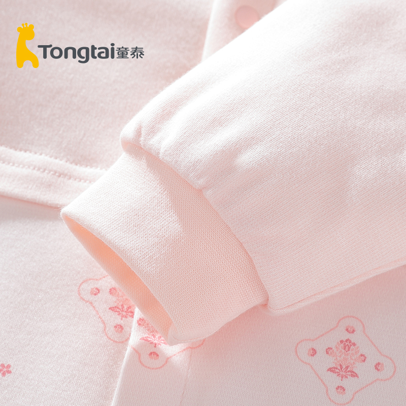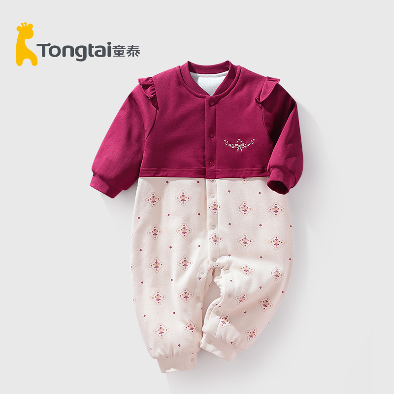 童泰秋装 假两件女宝外出爬服哈衣 婴儿连体衣夹棉薄棉保暖闭裆飞袖