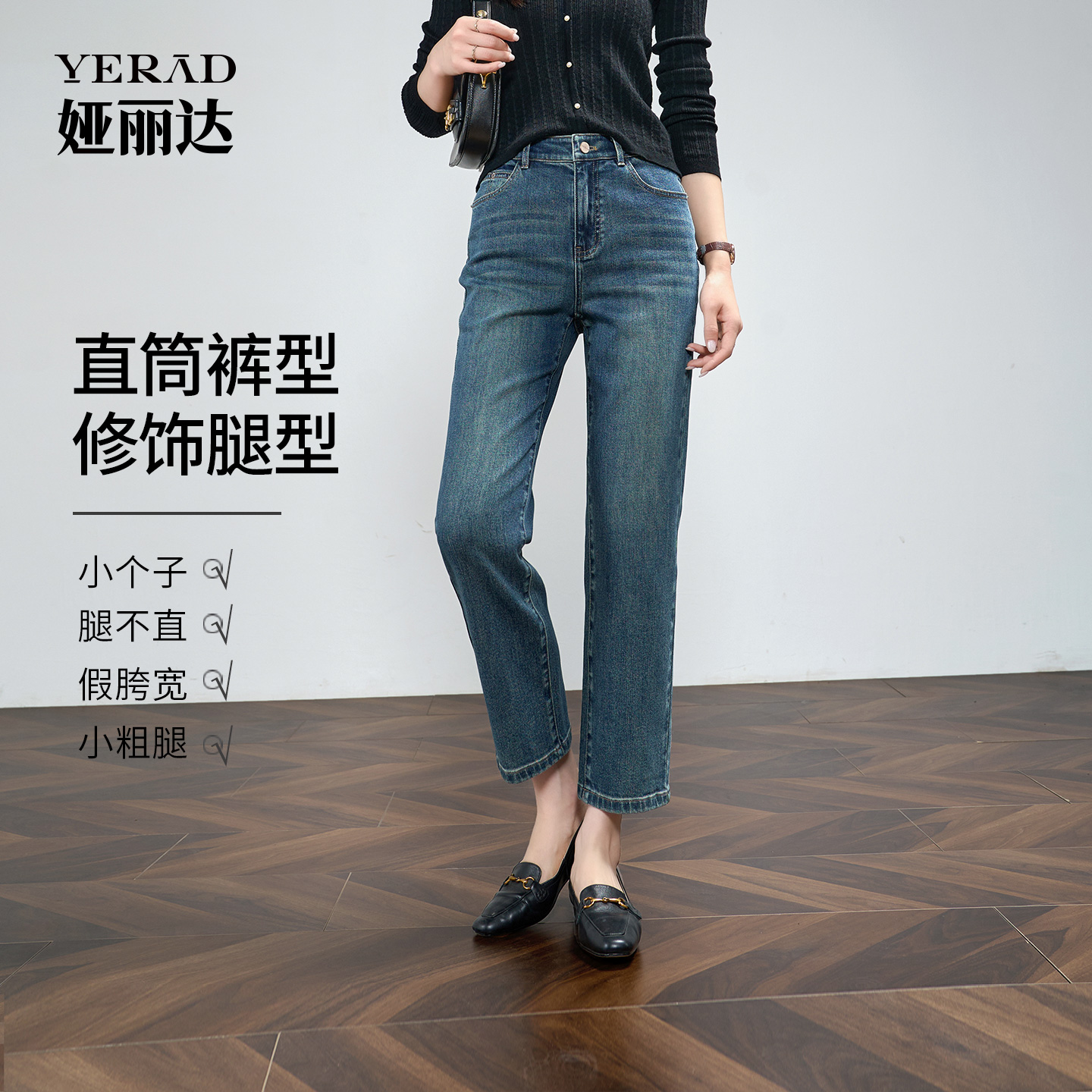 宽松显瘦烟管裤 逸阳高腰深蓝不易掉色牛仔直筒裤 女九分2025秋新款