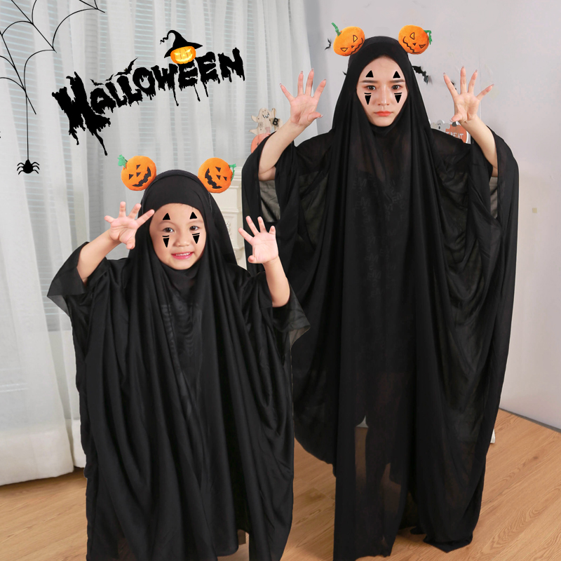 万圣节儿童服装 扮黑幽灵衣服搞怪无脸男cos服饰 男童女宝宝亲子装