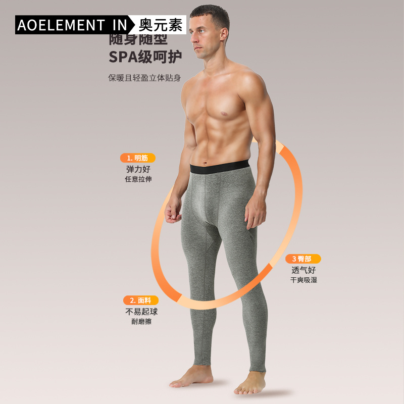 打底秋裤 防寒内衣羊毛桑蚕丝无痕单件男士 男秋冬季 加绒加厚保暖裤