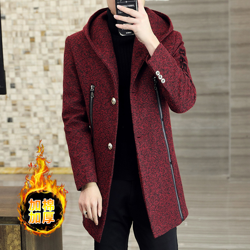 立领单排扣风衣宽松休闲加大码 中长款 翻领外套英伦风 男士 春秋薄款